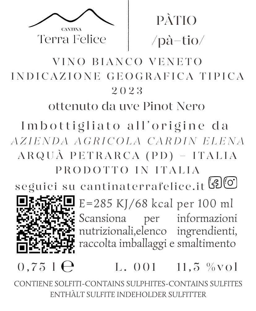 Pàtio nero in bianco nasce da un'accurata selezione di uve di Pinot Nero vinificate in bianco (senza bucce), che regalano a questo vino freschezza e vitalità.