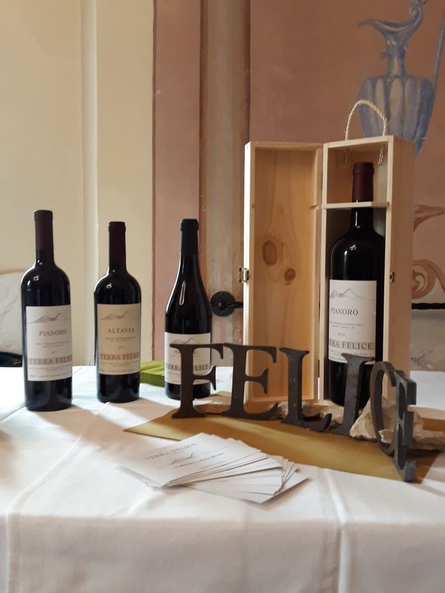 Il nostro impegno nel coltivare in vigna l’uva e nel seguire le fasi di vinificazione e di affinamento del vino nei tonneau di rovere, fa di questo vino il giusto portabandiera di “Terra Felice”.