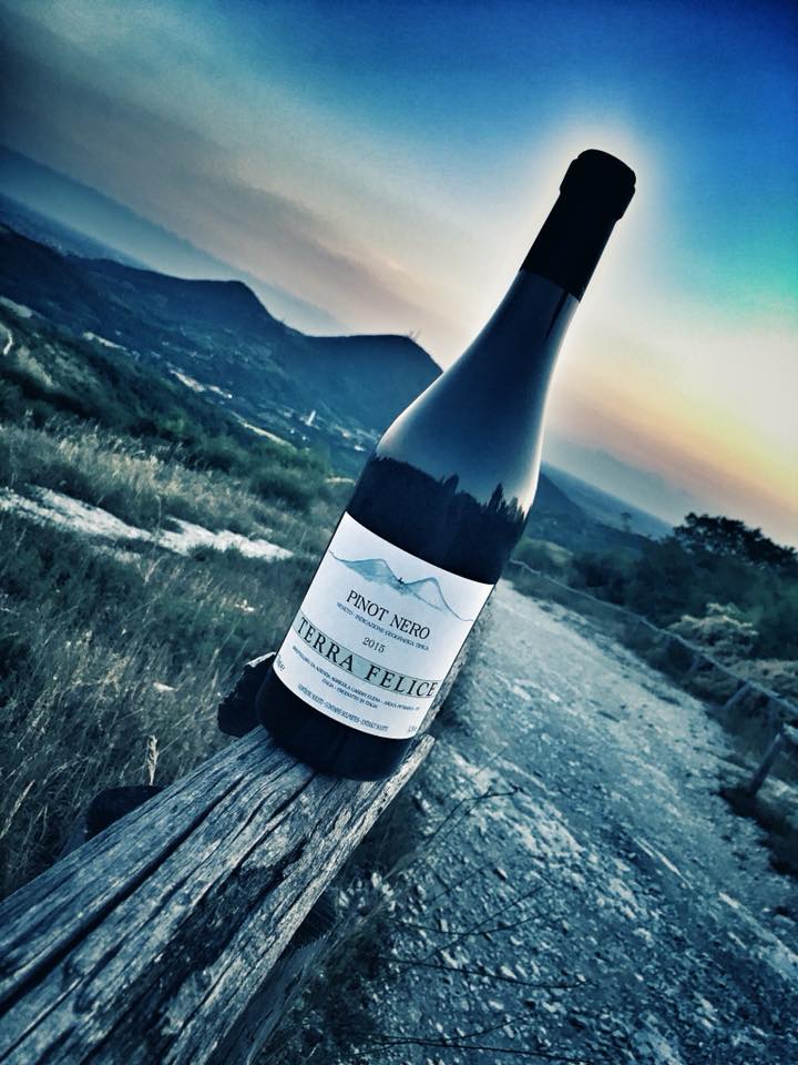 Il Pinot Nero, croce e delizia di ogni vignaiolo, è un vitigno difficile da coltivare nel nostro territorio. Caldo, scarsità d’acqua, tralci che senza la giusta umidità si rompono con uno sguardo, l’uva che matura in modo disomogeneo, tanto da costringerci a entrare più volte in campo: una piccola tortura, compensata però da una qualità eccelsa.